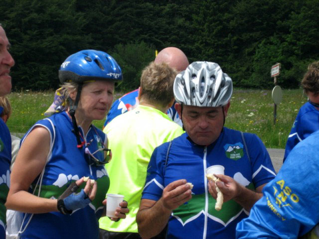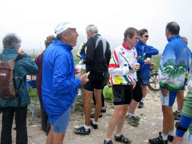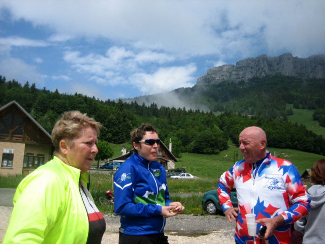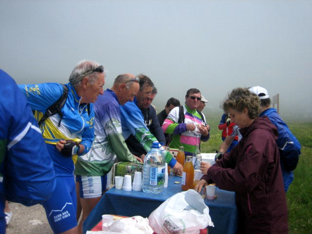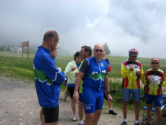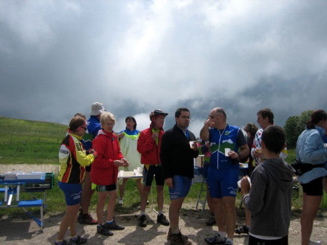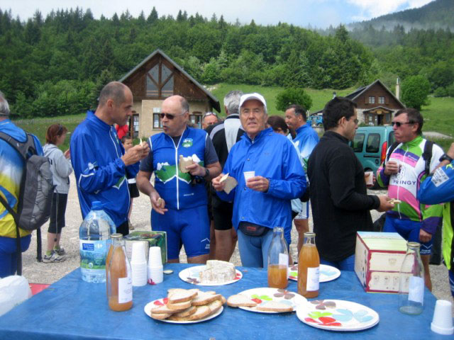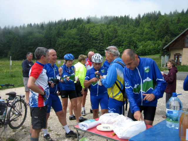 Malgré un temps frais, une soixantaine de participants sont venus au rendez-vous du Col de la Cluse pour partager un moment de convivialité autour de produits locaux (tomme et pain de Chartreuse, vin et jus de pomme de Savoie). Une dizaine de routiers sont partis ensemble de Chambéry pour escalader en hors d'oeuvre le col du Granier...