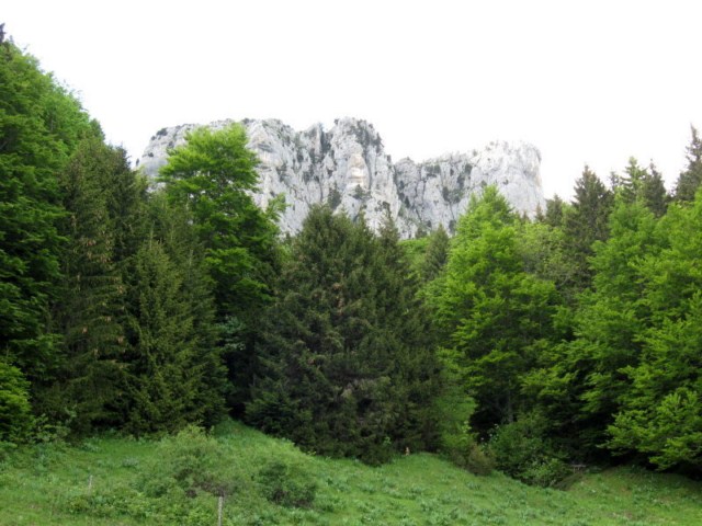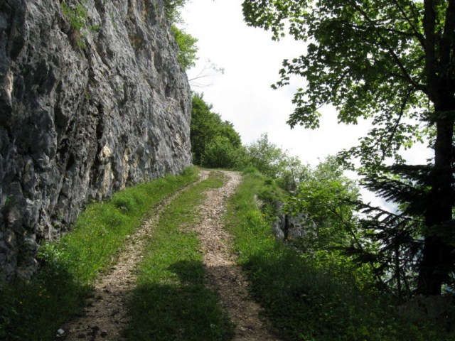 Passage du la route forestière dans une barre rocheuse après le col du Cucheron